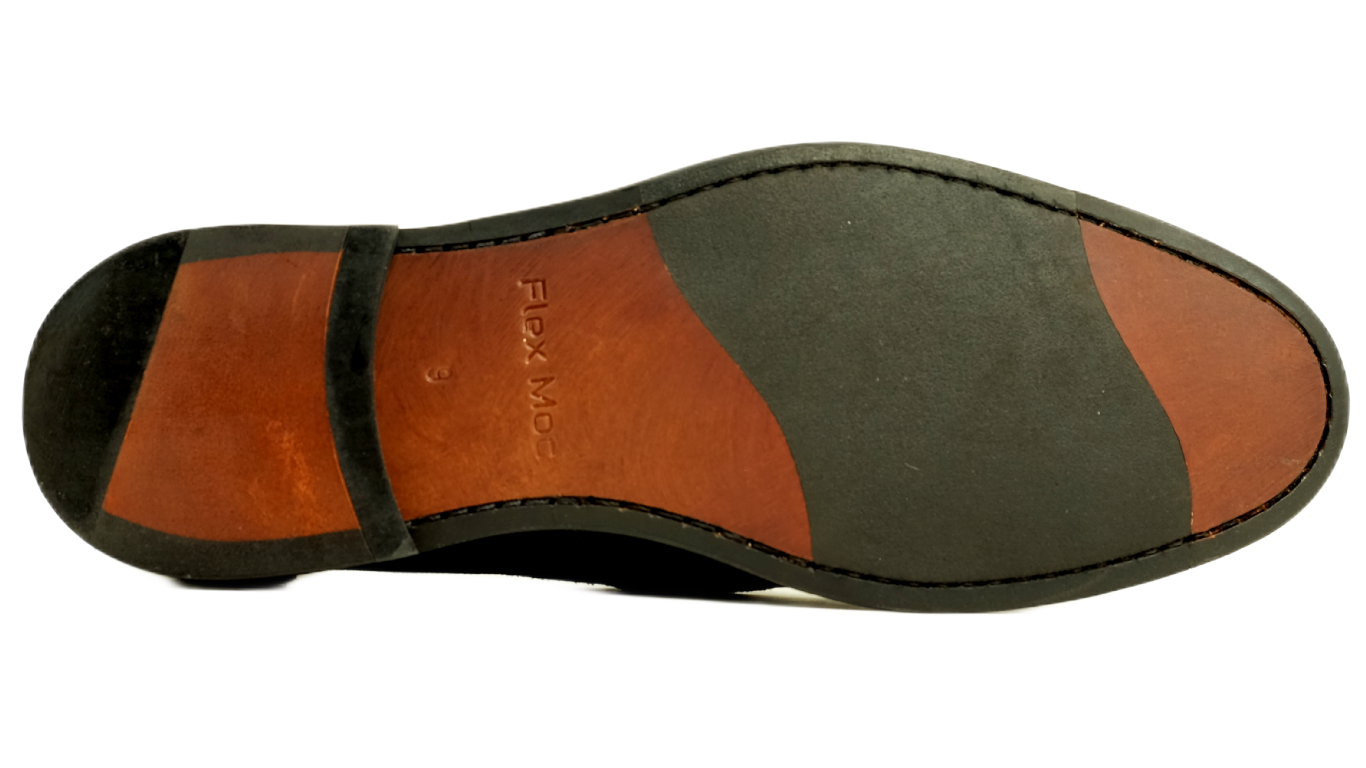Leather soles with rubber forepart injected for flexibility